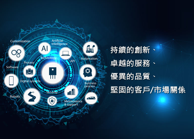 本公司努力開發第三代半導體相關應用於電源管理的IC元件,致力於增加電子產品的轉換效率和節能省碳的功效,進而提升成為世界級電源管理IC元件的品牌。